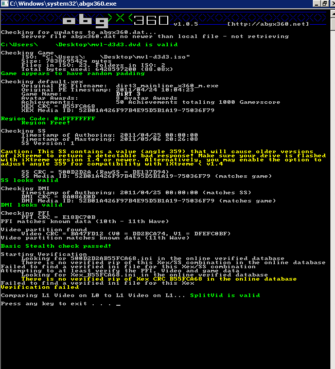 Checking for updates to abgx360.dat...