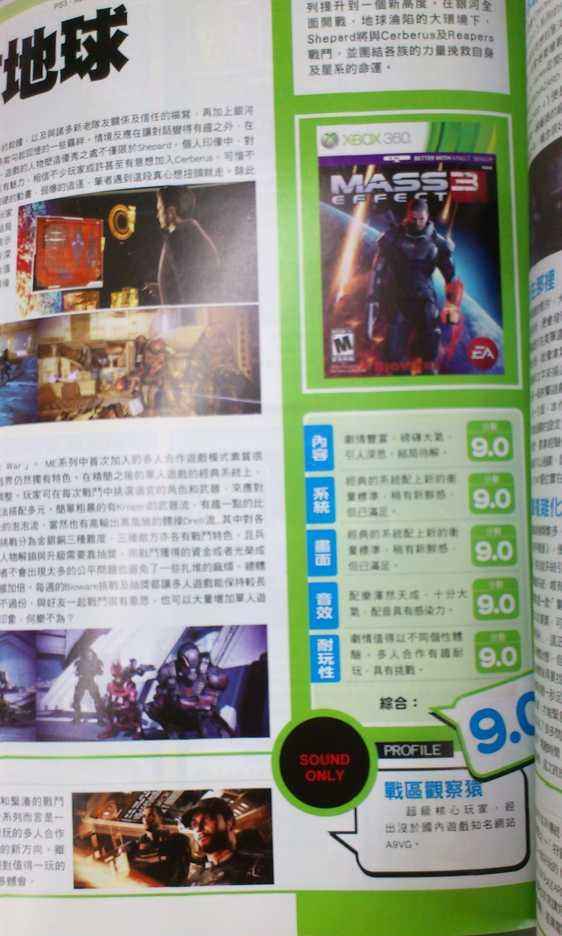 香港游戏杂志GAME WAVE 刊登了本站战区观察猿的ME3评估文章 |