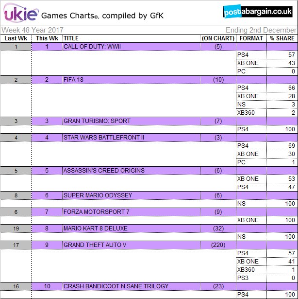01 (01) CALL OF DUTY: WWII (ACTIVISION) - 149,280 / 1,342,280 [-40%]