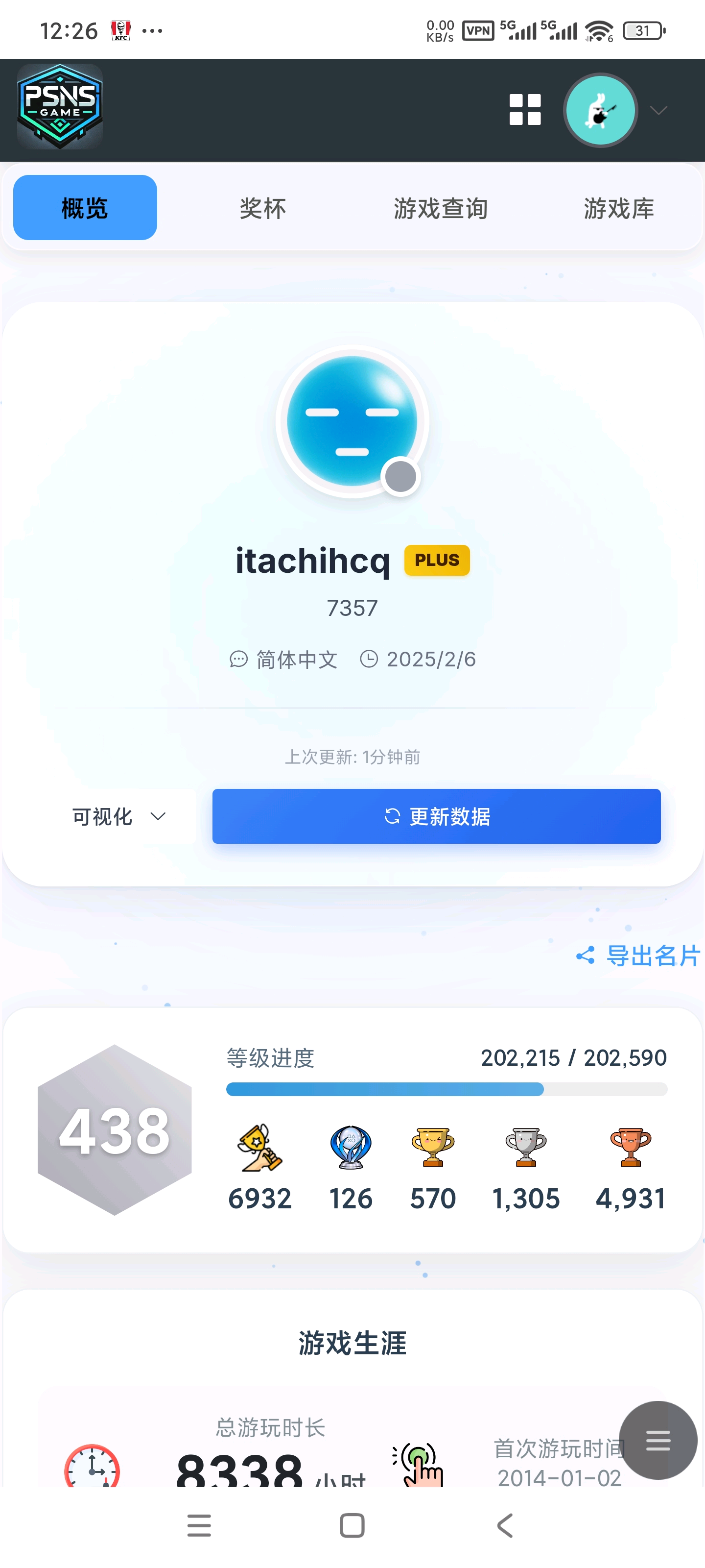 xiaoyiren 发表于 2025-11-30 10:30 上次坛友推荐的PSNexus数据详细,随时可查,挺方便的。唯一缺点是同步后数据会滞后几天