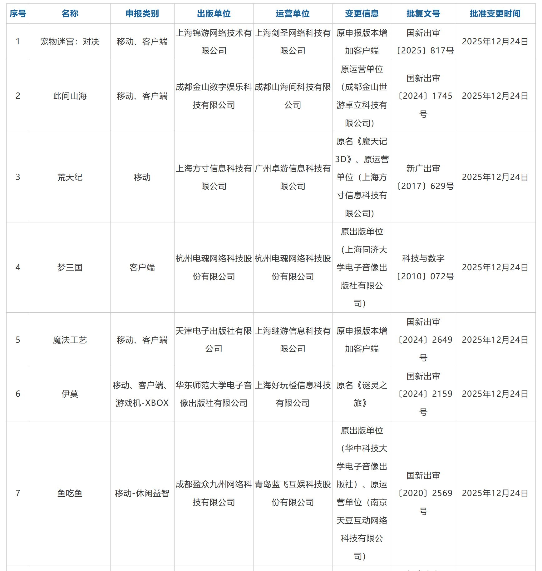 [业界] 2025年12月份进口网络游戏审批信息发布 |