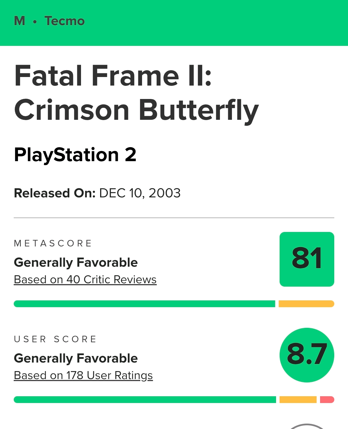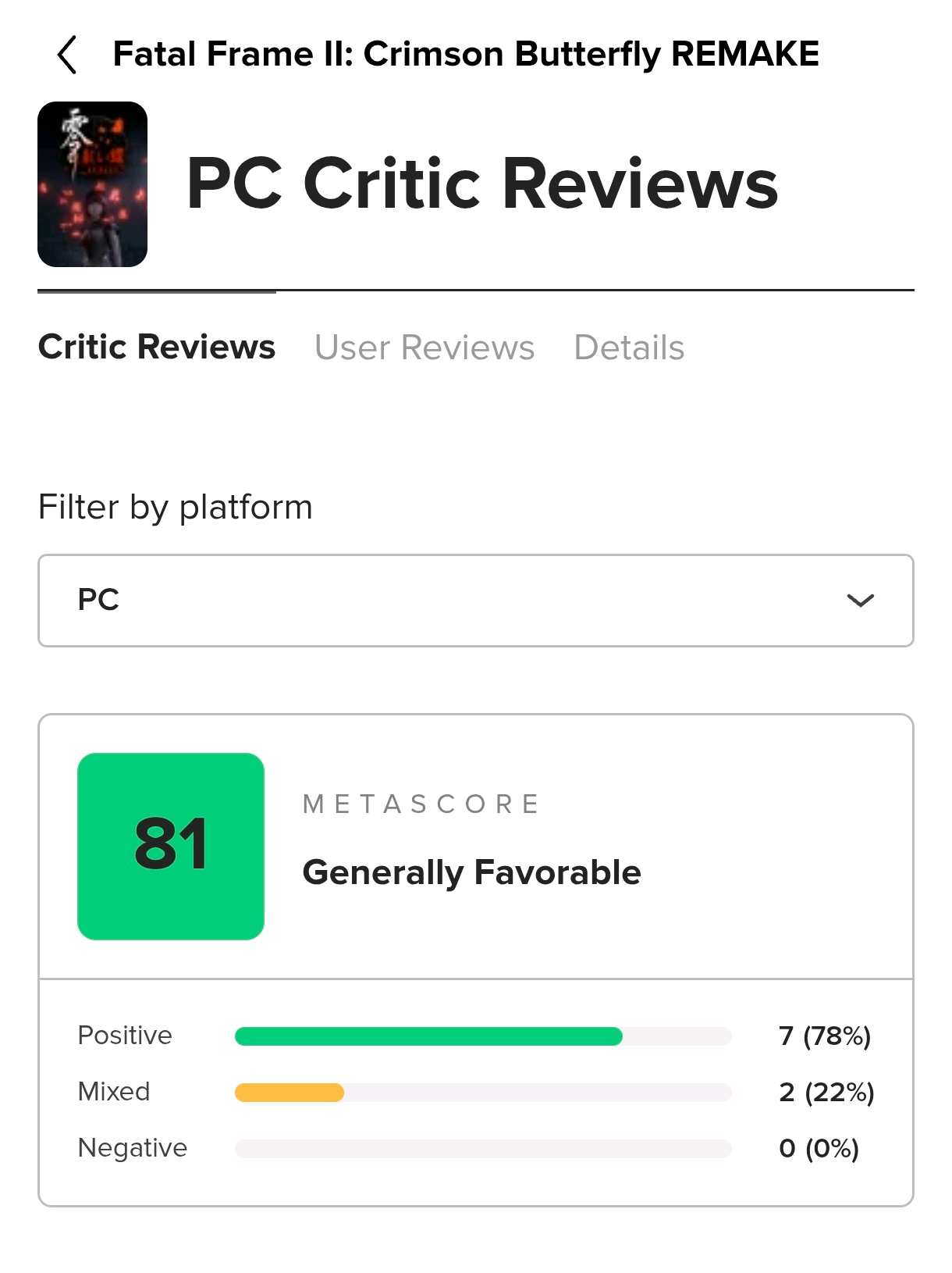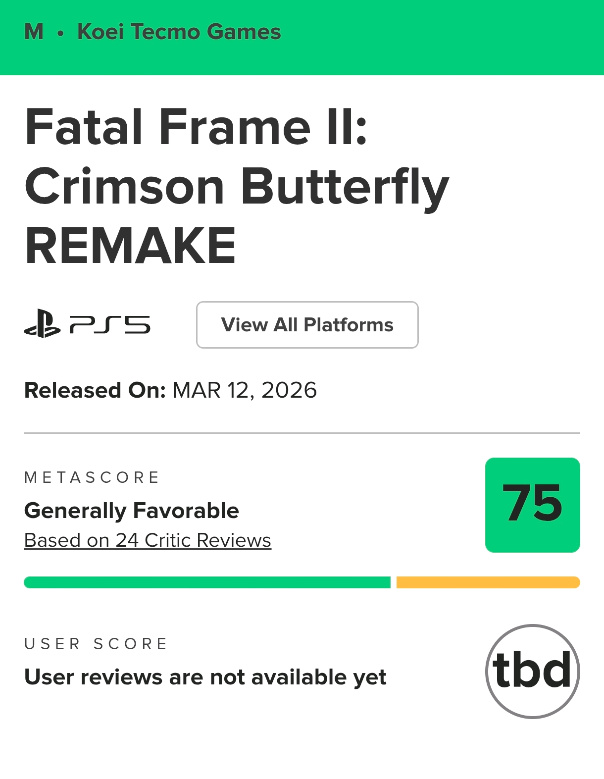 [业界] 《零~红蝶~重制版》媒体评分解禁,PS5版MC 75分,IGN 8分 |