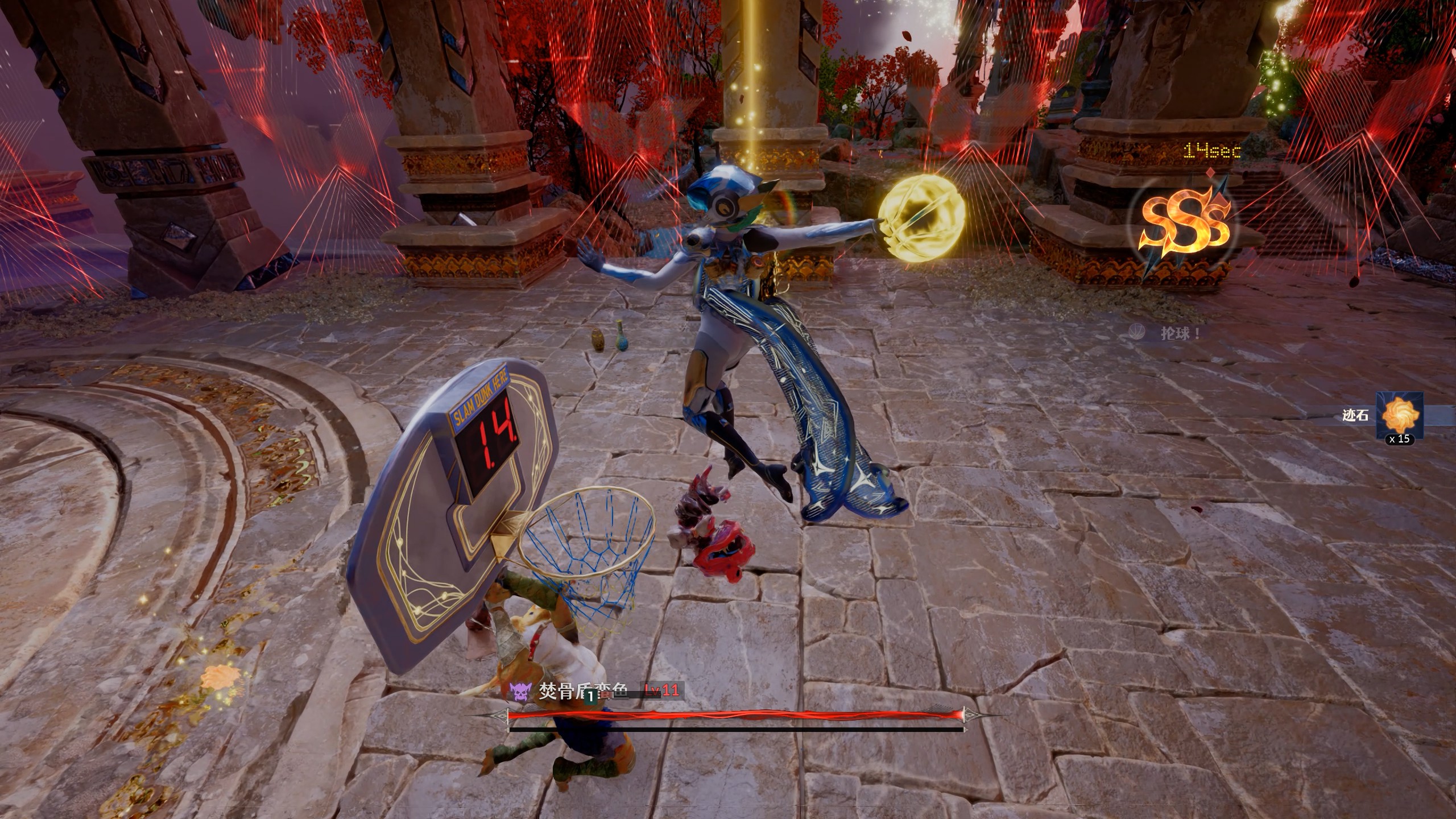 然而,这种严肃美感在玩家拿起武器的一瞬间便发生了奇妙的扭转。开发者在武器库中大胆地将折凳、篮球、吉他、陀螺等“脑洞武器”与一众传统武器置于同等地位。你可以看到玩家在用长剑或拳套打出连段后,突然掏出一把折凳开始拍击敌人,或是利用篮球的三分投射与灌篮攻击在大批怪物中七进七出。值得一提的是,篮球这个武器的动作招式似乎参考了一位大家熟悉的名人,结合游戏名字来看,制作组应该是他的真爱粉了。这种“认真的战斗系统”与“不认真的武器”之间的碰撞,构成了《鲲歌》最核心的辨识度。